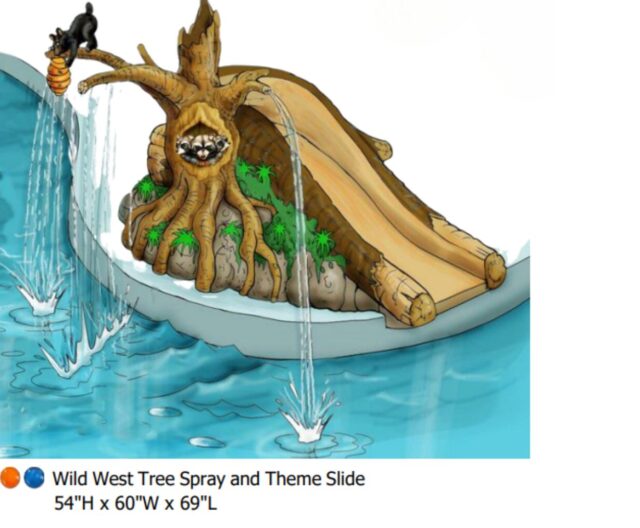 The new proposal includes a slide & spray features, as well as owl characters to complement the raccoons, Bartholomew & Randall.