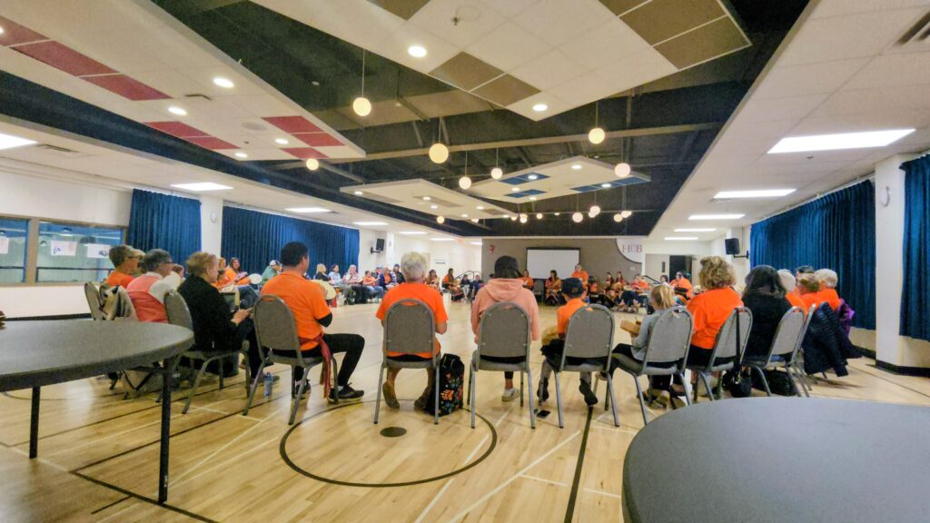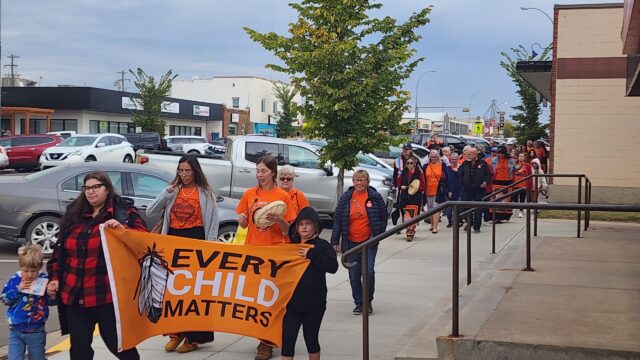 The day began with a flag raising at the town office of an “Every Child Matters” flag. A memorial circle & walk was then held down Main Street for the fourth year in a row.