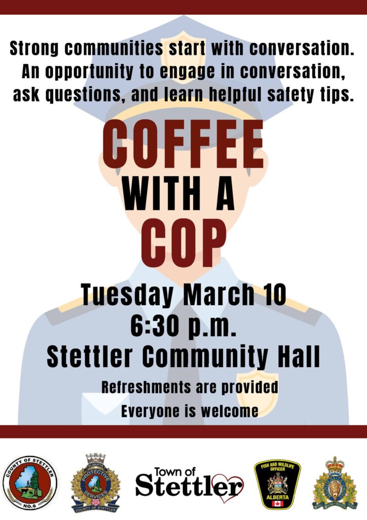 Stettler residents are invited to a Coffee With A Cop session at the Stettler Community Hall on March 10.