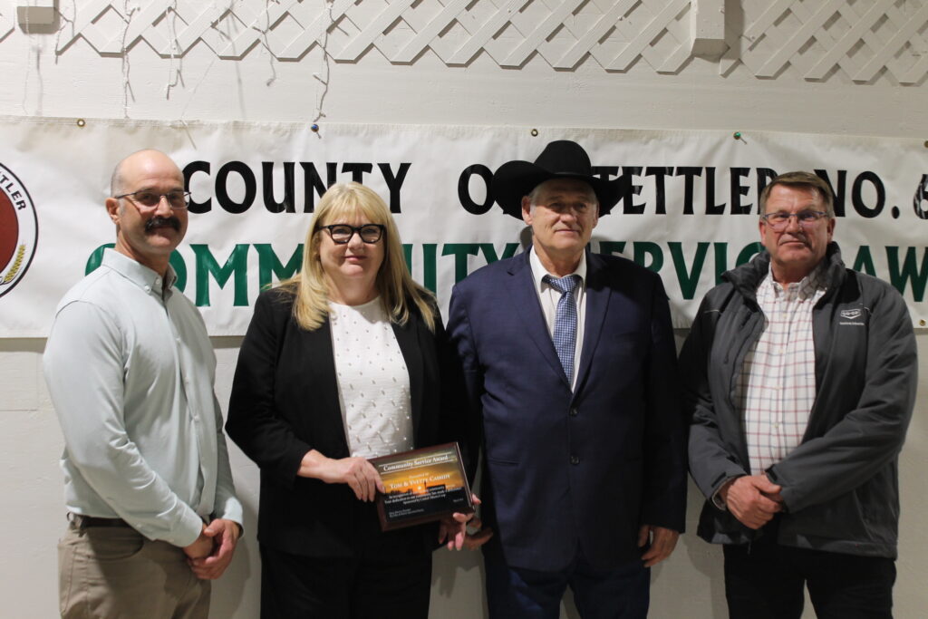 Big Valley Agricultural Society Community Service Award: Tom & Yvette Cassidy, presented by Dan Webster of Big Valley Ag Society & sponsored by Central Alberta Coop (Ken Vanden Brink rep)