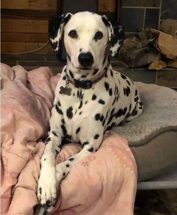 She is with her dalmation dog and travelling in her grey Toyota C-HR XLE with Alberta licence plate LVA978.